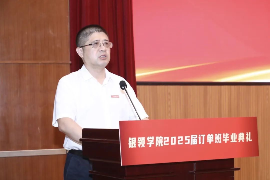 陈荣达代表公司向完成学业、实现优质就业的太阳成城集团tyc234cc官网2025届毕业生致以热烈祝贺,向为银领学子成长成才倾注心血的全体教师和订单行业导师表示衷心感谢,并对太阳成城集团tyc234cc官网坚守育人初心,屡创育人佳绩予以高度肯定。他以“播种与收获”的芒种哲学殷切寄语银领学子,并提出三重期许:一是勇做时代贡献者,将个人理想融入金融强国建设,矢志践行金融为民的本心;二是争做行业示范者,以诚信公正守护金融血脉,持续精进专业技能和服务品质;三是恒做终身实践者,永葆学习热忱与强健体魄,在实干担当中锤炼本领,勇当主角。