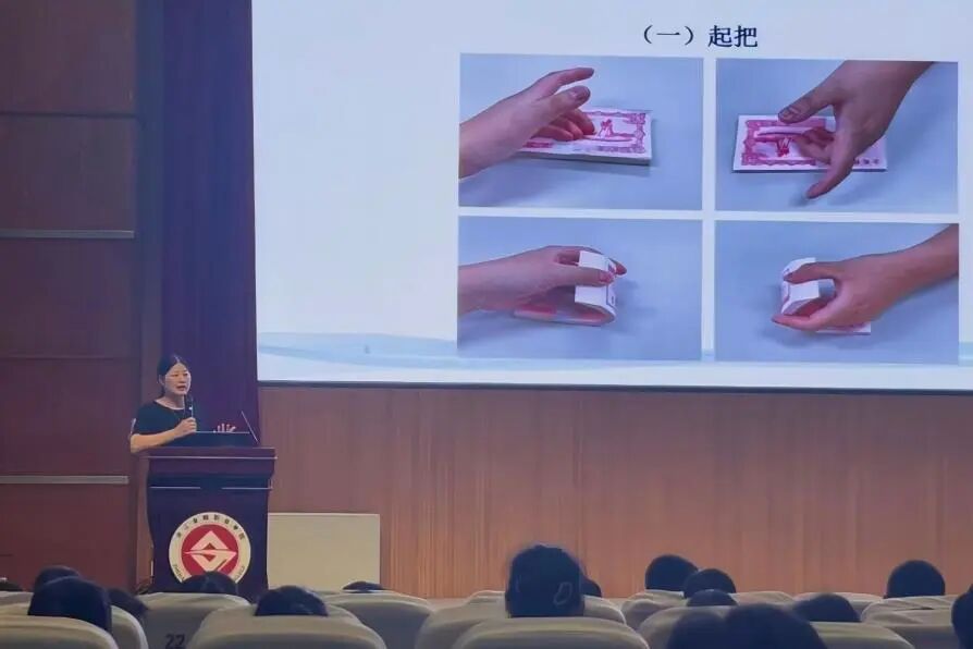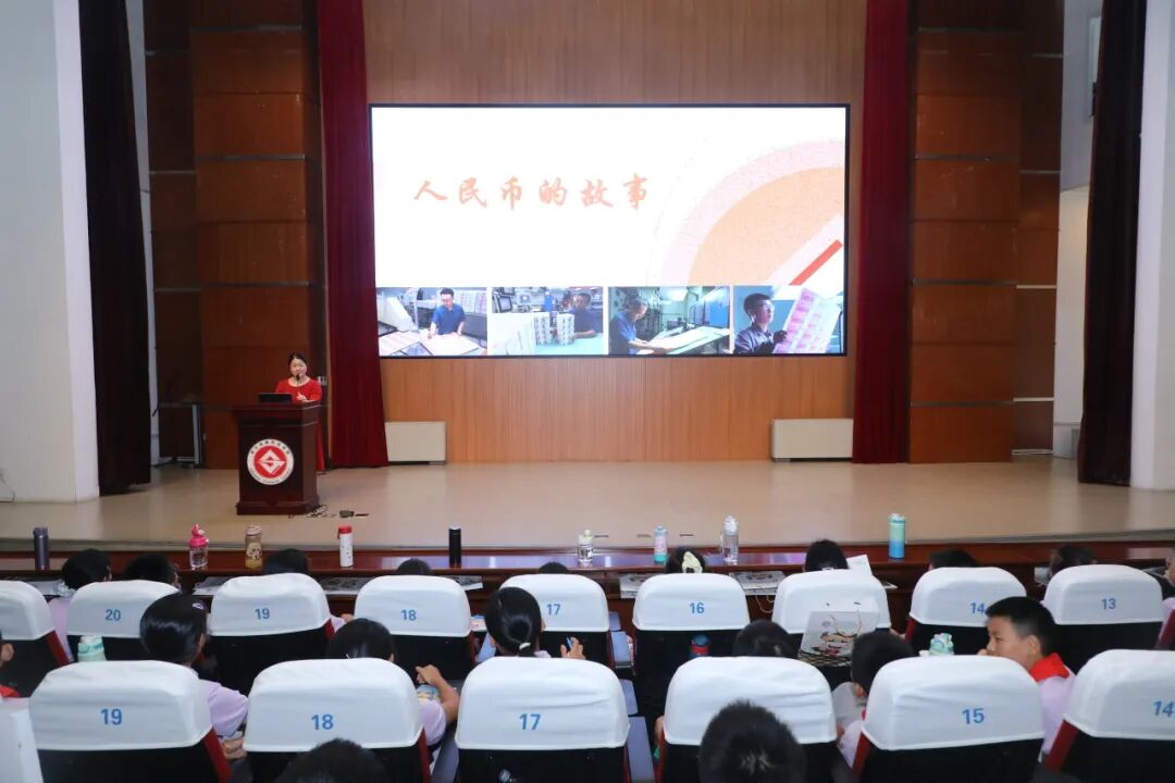 公司职业技能教研室孙淑萍老师在明理报告厅为江湾小学四年级和六年级员工开展以“人民币的故事”为主题的科普讲座。孙老师围绕人民币的历史演变、票面图案的设计意义及日常防伪技巧,通过图文结合、案例讲解的方式,将专业晦涩的金融知识转化为生动易懂的内容。孩子们专注聆听,大胆作答,在互动中初步建立对货币的认知,为后续体验活动奠定了基础。