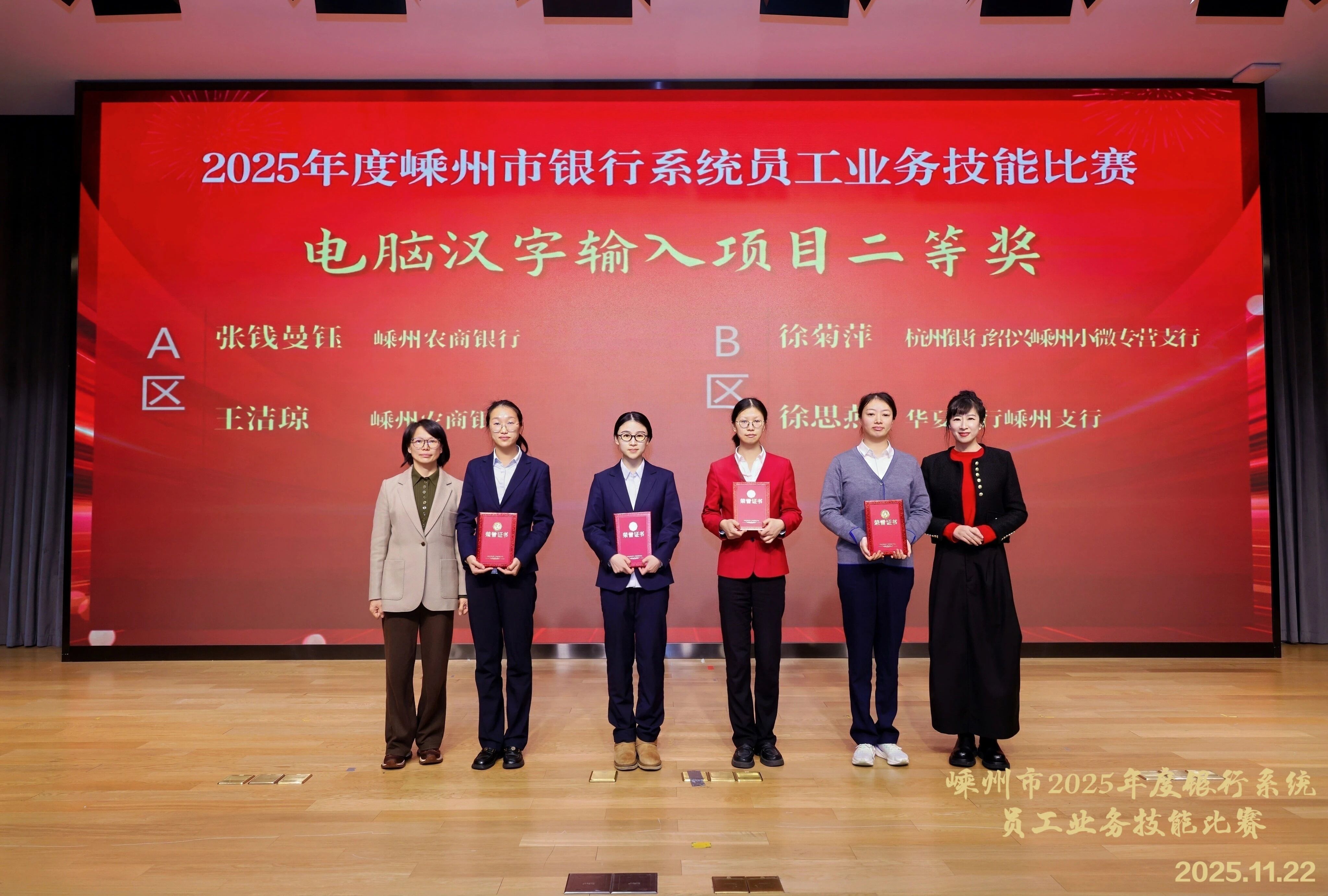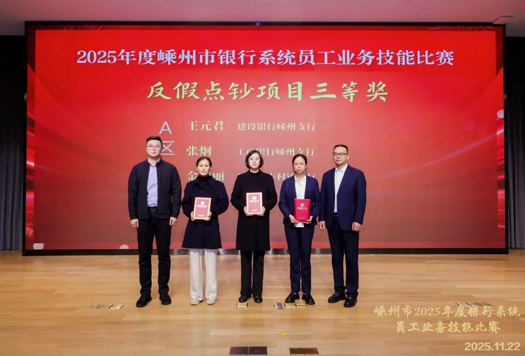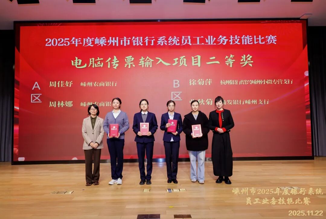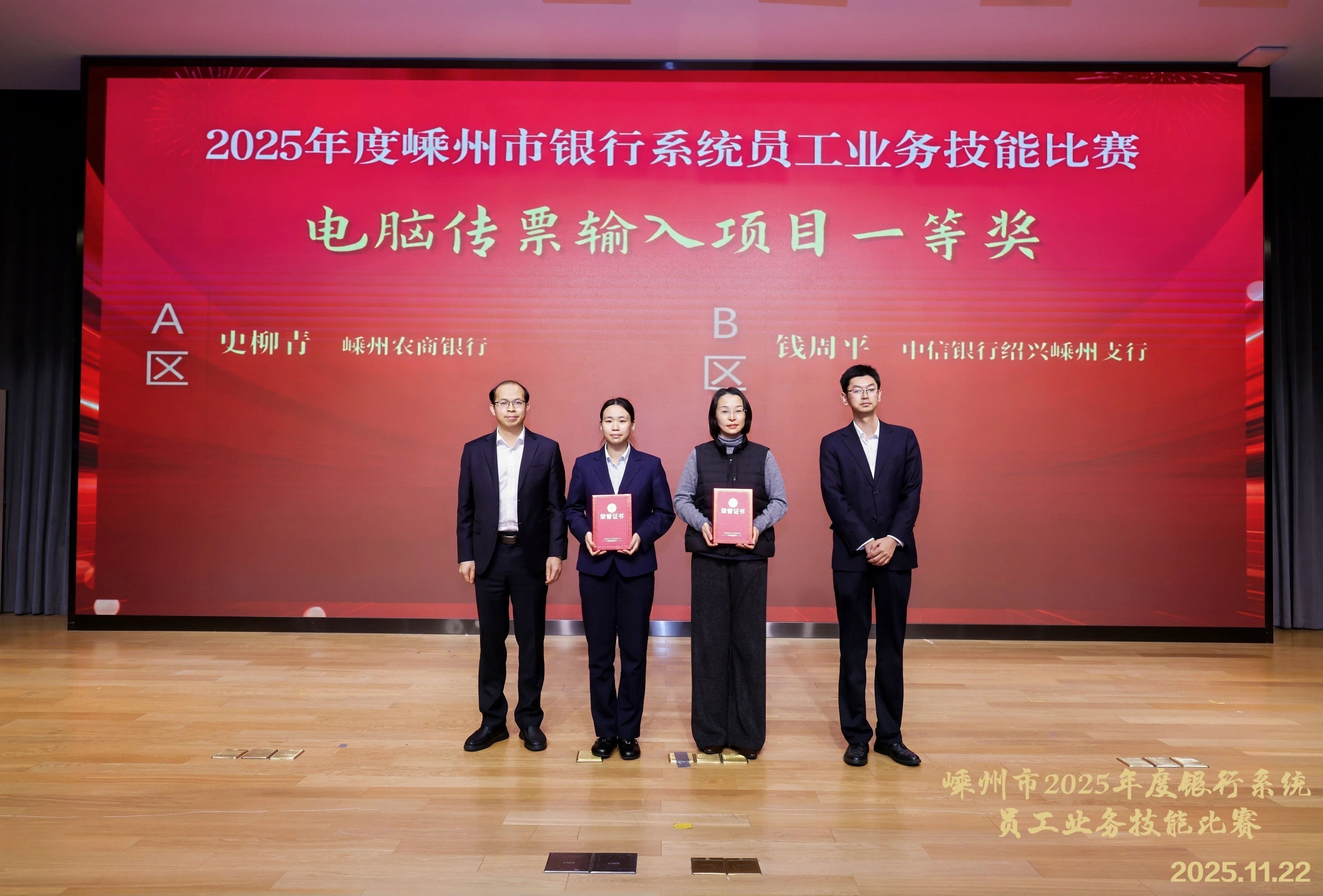 11月22日,在嵊州市2025年度银行系统员工业务技能比赛中,太阳成城集团tyc234cc官网员工荣获佳绩。